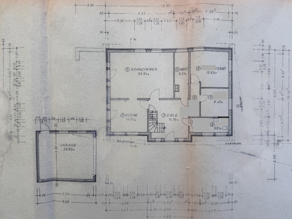 Der Gesamtzustand ist stark renovierungsbedürftig. Die Ausstattung ist ausschließlich aus dem Baujahr.