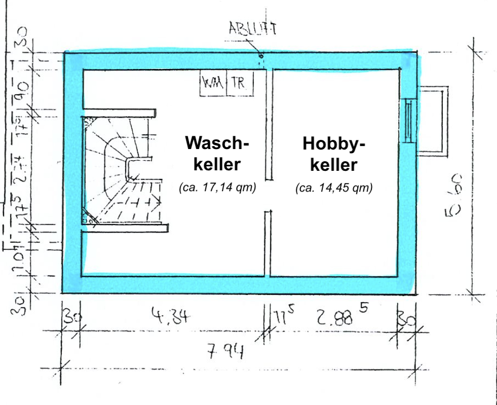 Der Teilkellerbereich verfügt über zwei Räume, wovon einer mit einem Heizkörper ausgestattet ist und als zusätzlicher Hobbyraum oder als Arbeitszimmer genutzt werden kann. Der große Kellerflur bietet Platz für Ihre Waschmaschine / Ihren Trockner sowie viel Stauraum.