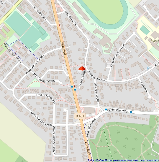 Der Autobahnzubringer zur BAB 23 ist in ca. zehn Autominuten erreicht. Den Elmshorner Bahnhof, von wo Sie Anschluss an die Hansestadt Hamburg sowie das nördliche Schleswig-Holstein haben, erreichen Sie zu Fuß in ca. 20 Minuten. Nahe gelegene Bushaltestellen sind die Haltestellen „Schanzenstraße“(Linie X99) sowie „Köhnholz (Süd)“(Linien 489 und X89).