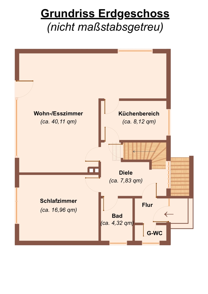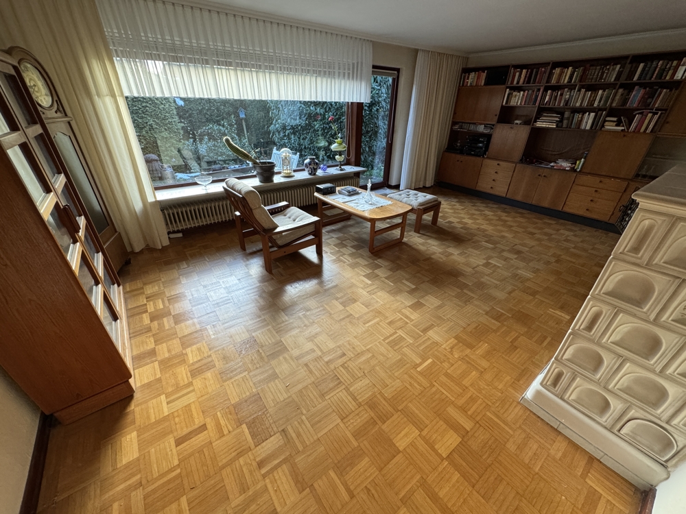 Das Haus befindet sich überwiegend im Ausstattungszustand des Baujahres. Bereits beim Betreten offenbart sich der klassische Charme des Hauses mit Holzvertäfelungen, Glasbausteinen und typischen Fliesen aus den 1970er-Jahren.