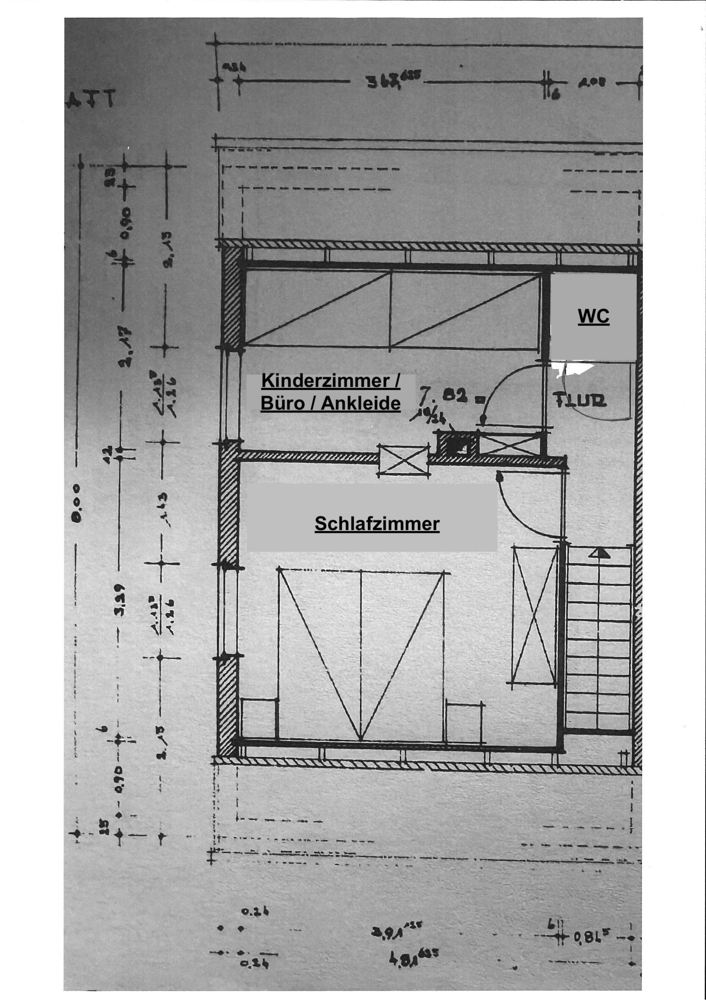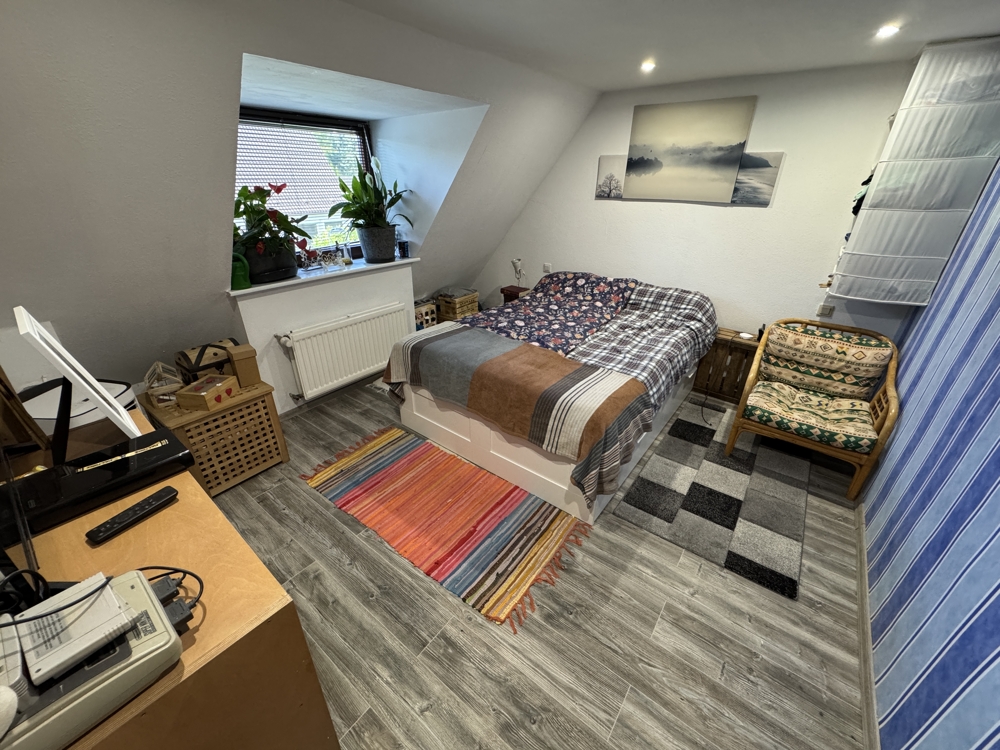 Via überarbeiteter Holztreppe gelangen Sie in das Obergeschoss, wo Sie zwei weitere Wohnräume und ein kleines Bad vorfinden werden.