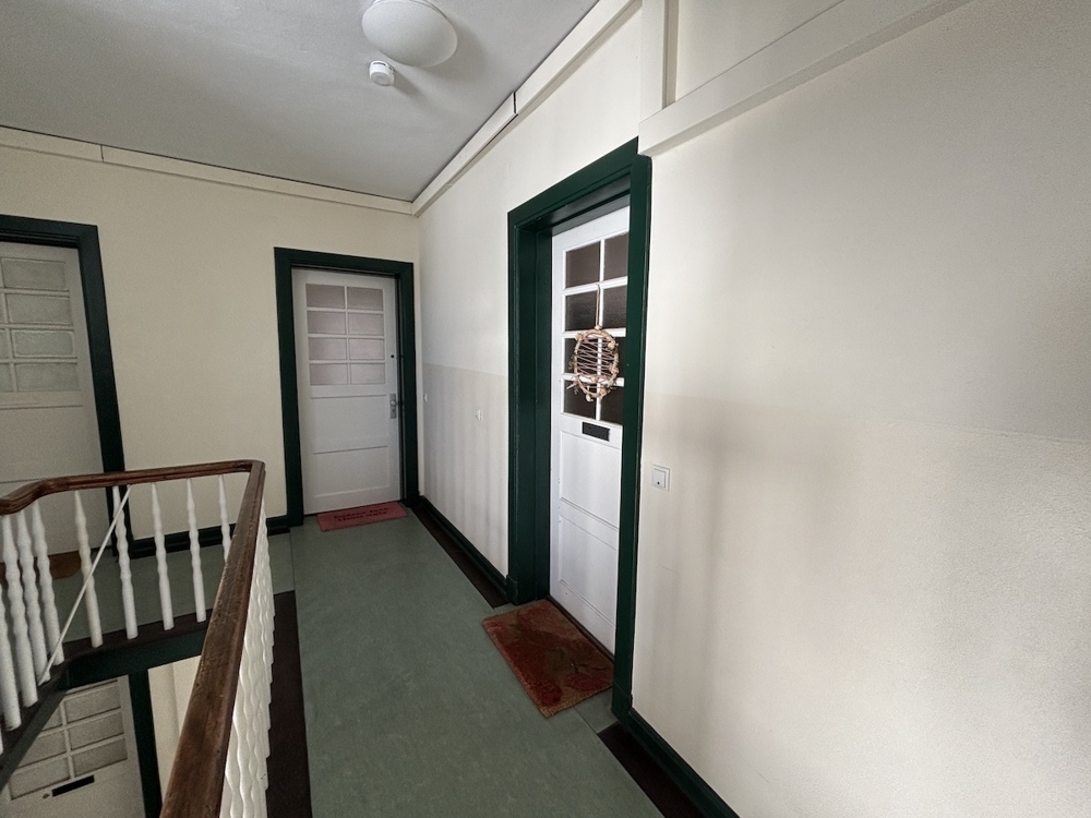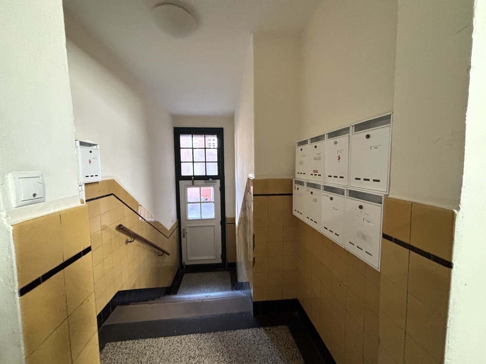 Die Außenansicht ist geprägt durch einen klaren Architekturstil der 30-er Jahre. Hohe Decken und große Fenster lassen viel Tageslicht in die 2-Zimmer-Wohnung, was zu einer hellen Atmosphäre beiträgt.
