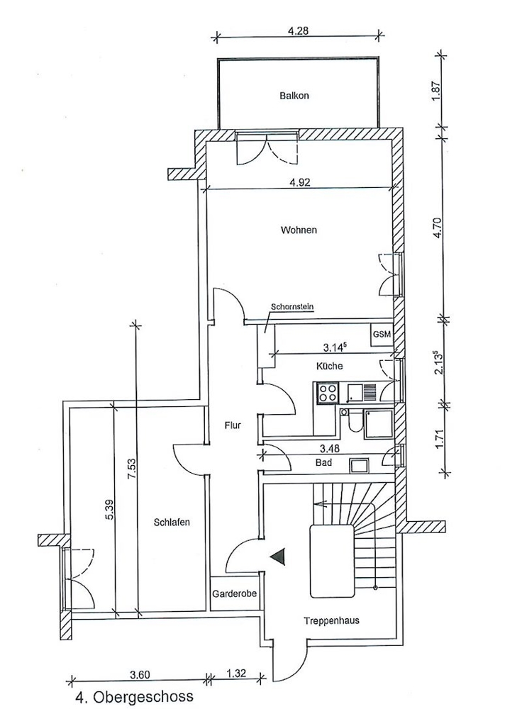 Im Jahr 2014 wurden zahlreiche Renovierungen durchgeführt, u.a. wurde der sonnige Balkon mit ca. 8 m² hervorgebracht. Die ca. 70 m² Wohn-/Nutzfläche verteilen sich auf ein großes Wohnzimmer mit dem Zugang zum Südwest-Balkon, eine Küche, den Flurbereich, das Schlafzimmer, ein Duschbad mit WC und Fenster. Die genaue Aufteilung entnehmen Sie bitte dem beigefügten Grundriss. Insgesamt ist die Altbauwohnung in einem gepflegten Zustand. Alte Holzdielen kann man in allen Zimmern wiederfinden.